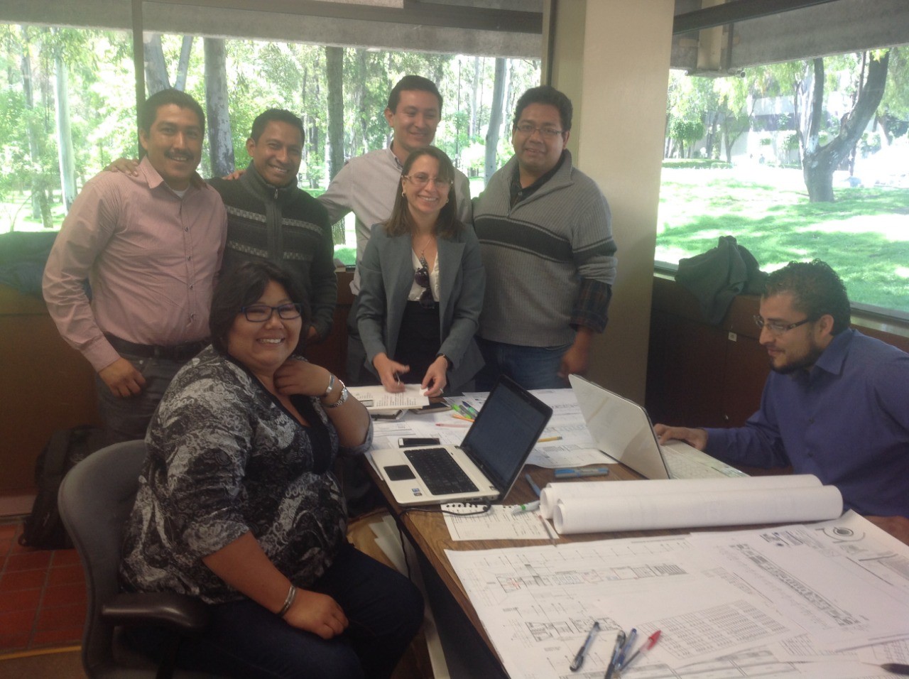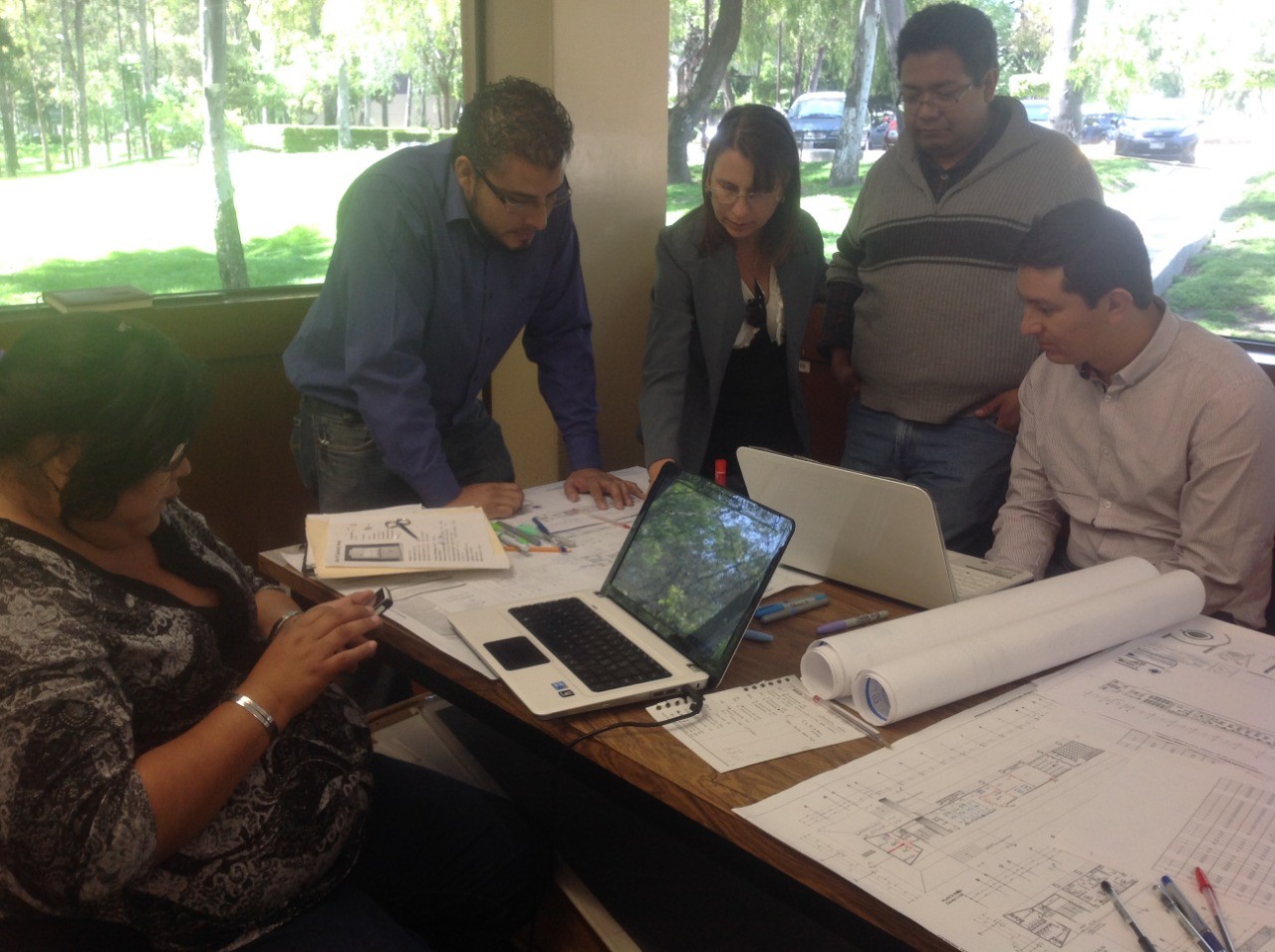 Miembros de la Comisión de Apoyo para la creación del posgrado de UPIIG en las instalaciones del POI en Cd. de México, para realizar modificaciones a la propuesta del Edificio de Posgrado; mayo de 2014.